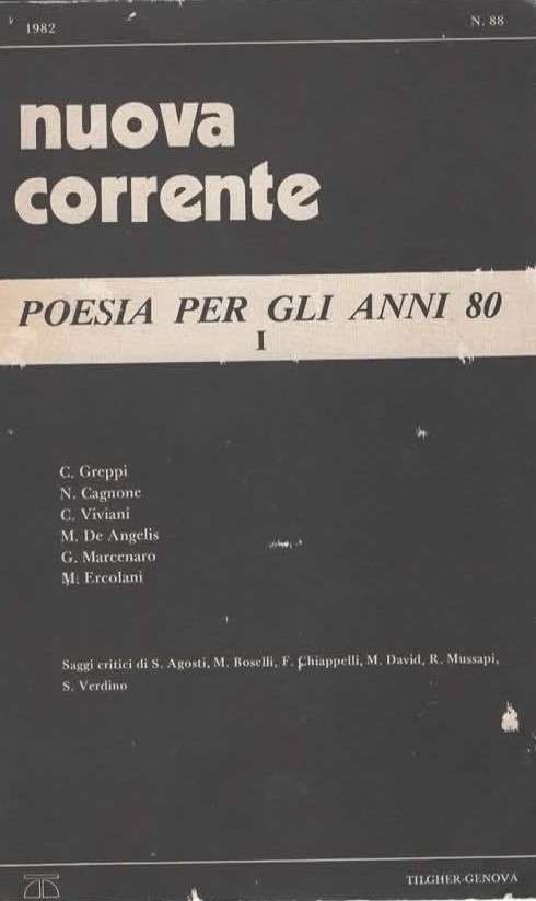 Il testo è tratto da: Nuova Corrente. Poesia per gli anni 80, 1, anno XXIX (1982), a cura di Stefano Verdino, pp. 309-310.