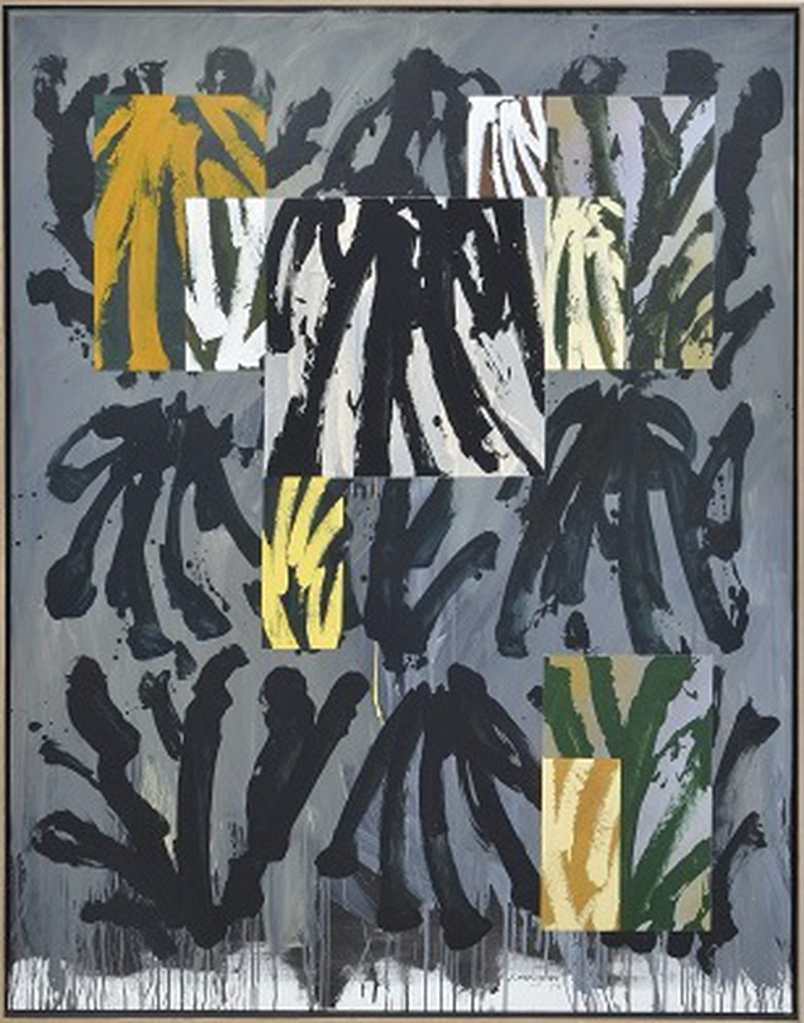Le macchie rammentano che si tratta di pigmento liquido, molto liquido, e distribuito dal pennello con rapidità, ma anche che nessuna cosa è pura sotto il sole, che la materia si sfalda, perde frammenti e linfa. L’atmosfera stessa è intarsiata da schizzi e schegge di colore.