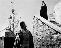 L’Otello di Orson Welles deve esser visto in lingua originale. Non si potrebbe altrimenti apprezzare sia l’espressività della voce di Welles – Fellini raccontava che si poteva stare incantati ad ascoltarlo per ore, anche senza capire una parola- che il suo genio musicale. Welles sa dare all’alternanza, all’impasto, all’ “orchestrazione” di voci suoni e rumori un carattere sinfonico. Nelle interviste del periodo, dichiarava che «Senza pensare nemmeno per un momento di paragonarmi a Verdi, vorrei fare come lui: non trasporre l’Otello di Shakespare, ma scrivere il mio Otello». Il riferimento a Verdi è azzeccatissimo: l’Otello è una partitura. C’è più musica nella colonna dialoghi e nella colonna effetti che nella musica di Angelo Francesco Lavagnino. La lavorazione, avventurosissima, del film durò anni – credo quattro – e portò a cambiare quattro attrici per il ruolo di Desdemona. Welles ricordò: «C’è una scena che comincia in un castello italiano e finisce in una cisterna in Marocco». La troupe girò in una pletora di città che ad elencarle gira la testa, il lavoro fu interrotto e ripreso non so quante volte, e fino all’ultimo non si seppe se sarebbero riusciti a finirlo. Il risultato è un miracolo di montaggio. Ma c’è anche dell’altro: la bellezza maestosa della fotografia, la potenza degli accostamenti paesaggio-personaggio (le scene col mare in tempesta, che mai indulgono a effettacci “tempestosi”, anzi sono riprese a distanza e con movimenti di macchina lenti, a rivelare il rifiuto di Welles verso ogni soluzione esteriore; eppure esercitano una suggestione magica per le angolazioni di ripresa oblique, inusuali nel cinema sonoro e che rimandano ad Ėjzenštejn, per la perfezione con cui movimenti dei personaggi e movimenti di macchina si compenetrano in una vera coreografia, per i contrasti di luci e ombre…) E poi c’è la recitazione di Welles: Welles che non era un interprete shakespeariano, come si dice, ma era shakespeariano punto e basta! I detrattori lo definivano un gigione. Errore: fu gigione per interpretare il ruolo di Charles Foster Kane, che era un gigione anche come personaggio, ma per il resto della sua carriera ridusse all’osso i mezzi della sua arte interpretativa. La recitazione di Welles è puro carisma. Welles recita come se leggesse tra sé e sé, come se parlasse in dormiveglia. Quasi non si muove. Può provocare tempeste stando seduto, guardando in basso ed emettendo un filo della sua voce risonante e oscura. In Otello, le inquadrature non concedono nulla al narcisismo degli attori: li riprendono di quinta, di sguincio, di spalle… e come si poteva fare diversamente in un film dove la protagonista è interpretata da quattro attrici diverse? Ma se la grandezza di un’interpretazione risalta anche in un film che è quasi tutto di montaggio, allora, signori miei, vuol dire che è davvero una grande interpretazione! E quella di Welles lo è. E poi c’è il suono. Otello è tutto voci: voci e rumori. A volte Welles evoca il suono senza farlo realmente udire. Crea delle suggestioni sonore tramite i movimenti di macchina, il ritmo, le luci, i movimenti, il ritmo dei colori, i suoni che s’odono davvero creano un ambiente dove le risonanze, che s’intrecciano coi suoni reali in modo che sembra di udirne altri. Vedendo il film, le sue voci sembrano più numerose e più magiche che ad un esame della colonna sonora. Nelle scene ambientate nei sotterranei, quei sotterranei paiono rimbombare più di quanto la colonna sonora non giustifichi. In quelle col mare in tempesta, né il mare né le voci degli attori sono potenti – anzi si oscurano a vicenda – eppure noi crediamo di udire tutto il mistero minaccioso di quel mare che Shakespeare chiamava multitudinous, moltitudinoso. Anche il film di Welles è multitudinous, e lo è con economia di mezzi.