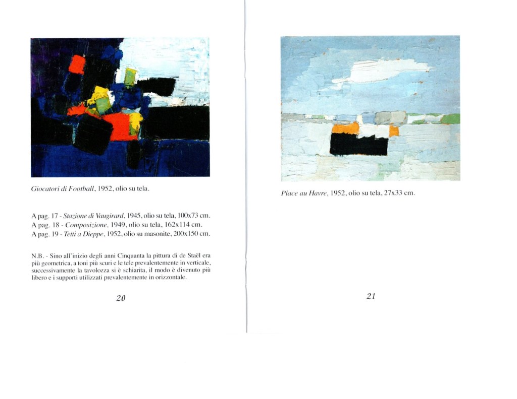 *I testi del pittore sono tratti da: Lettres du Maroc, Edition Khbar Bladna, Imprimerie Spartel, Tangeri, 2010; Les Gueux de l’Atlas, ibidem, 2010; Cahier du Maroc, ibidem 2010. In postfazione le affermazioni di De Staël sono riportate da: Cieli immensi. Lettere 1935-1955, Le Lettere, Firenze, 1999.