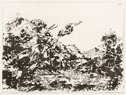 Il primo gesto artistico dell’uomo non è né pittura né scrittura ma schizzo materico. L’energia di questa idea è sostenuta inconsapevolmente da alcuni grandi pittori nel corso dei secoli: Leonardo, che interpreta le crepe dei muri come scene di battaglia; Piero di Cosimo, che vede come segni pittorici i suoi stessi sputi; Alexander Cozens che inventa paesaggi rocciosi a partire da macchie d’inchiostro; Victor Hugo, che da fondi di caffè o sgorbi casuali abbozza castelli, dirupi, mani da incubo.
