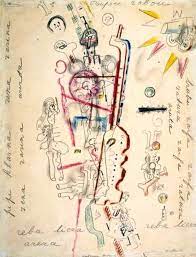 Artaud non scrive e disegna come si scrive e si disegna normalmente: lo fa in modo così eccessivo e costante che ne risulta un riversarsi del quotidiano nella grafia che lo raccoglie e registra.