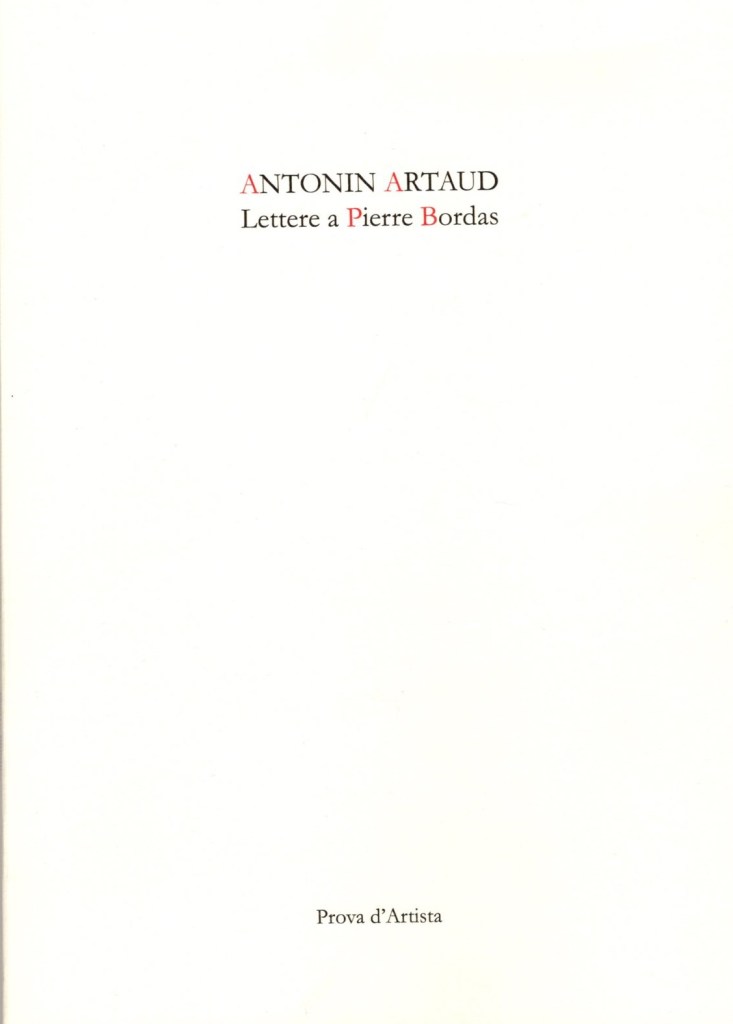 Le Lettere a Pierre Bordas non è un libro, ma un omaggio amoroso del gallerista Hervé Bordas, figlio dell’editore, del traduttore e poeta Domenico Brancale, del saggista e poeta Pasquale di Palmo, dell’artista Nicola Samorì, al “suicidato dalla società” che sempre siamo costretti a ricordare: Antonin Artaud.
