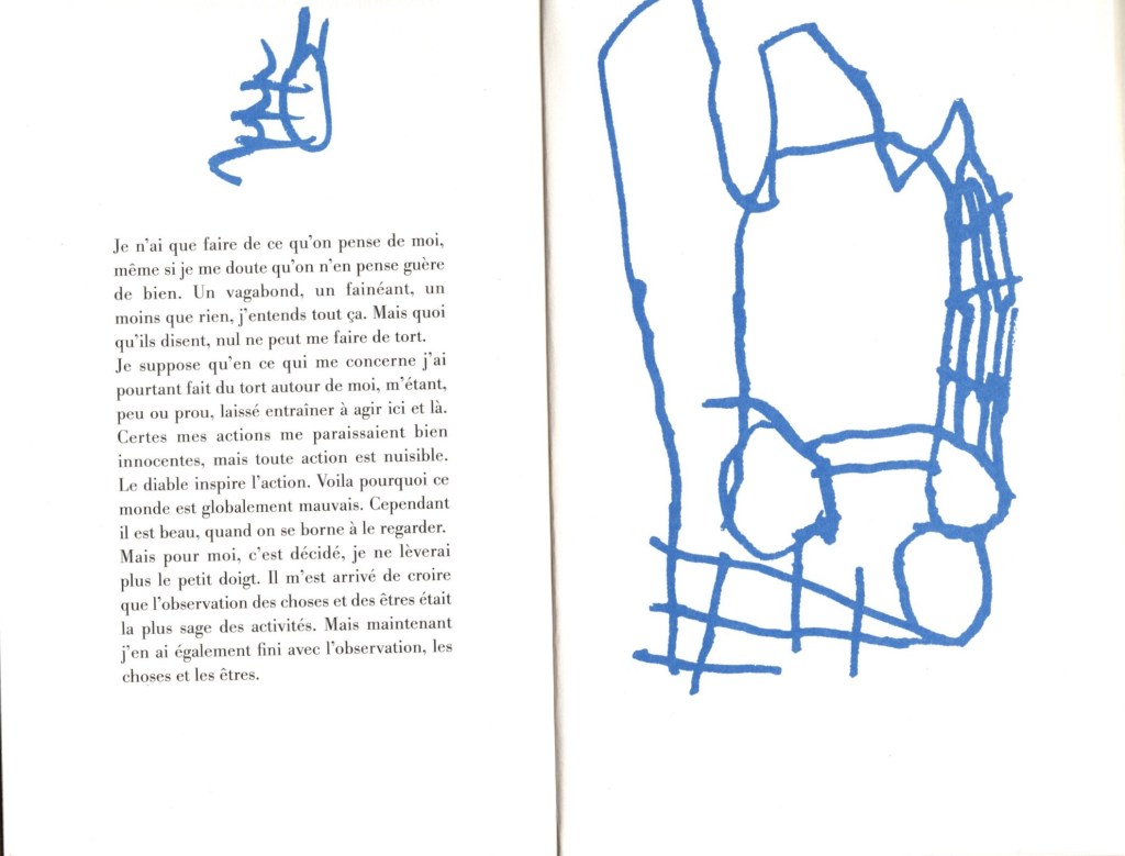Non so che fare di ciò che si pensa di me, anche se dubito davvero che si pensi qualcosa di buono. Un vagabondo, un fannullone, un meno che niente, lo capisco bene. Ma, qualsiasi cosa dicano, non possono farmi nessun torto. Suppongo che, per quanto mi riguarda, sono io che ho fatto un torto a me, essendomi, più o meno, lasciato andare ad agire qua e là. Certe mie azioni mi sembravano innocenti, ma ogni azione è nociva. Il diavolo ispira l’azione. Ecco perché il mondo è globalmente cattivo. Tuttavia è bello, quando ci si sporge a guardarlo. Ma in quanto a me, questa è la mia decisione, non leverò più un dito. Sono arrivato a credere che l’osservazione delle cose e degli esseri fosse la più saggia delle attività. Ma ora ho smesso: con l’osservazione, con le cose, con gli esseri.