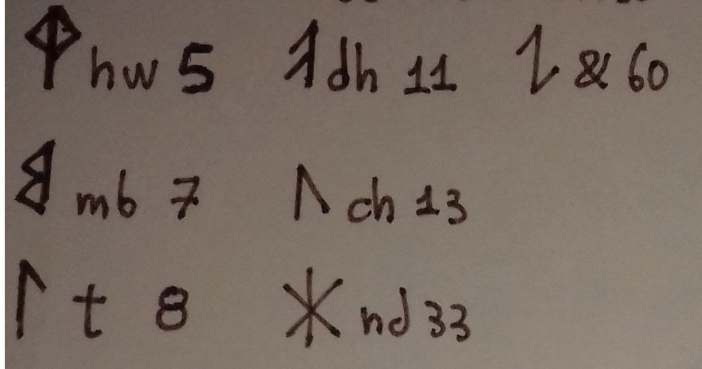 Qui lo scritto di Didier Willis si ferma, ma devo osservare che rimane da analizzare il secondo rigo dell’iscrizione, cosa che farò non appena potrò dedicarmici. Seguendo il mio istinto e la mia passione per gli enigmi ho provato e riprovato calcoli e combinazioni apparentemente slegate finchè ho scoperto che le Rune segrete di Moria nascondono ancora altro, e ciò che segue, sebbene possa inizialmente almeno inizialmente apparire un po’ forzato, trova riscontro in diverse affermazioni di Tolkien durante le sue conferenze.