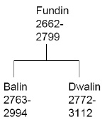 Suo fratello Dwalin nacque nel 2772, precisamente 222 anni prima della morte di Balin, il quale designò perciò da questo numero il suo erede, colui al quale sarebbe spettato di diritto il titolo di Signore di Moria, uzbad Khazad-dûmu.