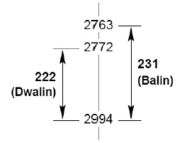 Il numero 259 attesta forse finalmente, l’aderenza di Balin al lignaggio di Erebor, perché 259 × 10 = 2590, data del ritorno dei Nani alla Montagna Solitaria. Fino a che poi Erebor assunse fama di una casa di una certa importanza, la maggior parte dei Nani risedettero di nuovo nelle Montagne Grigie o nei Monti Azzurri. È solamente a partire dal 2590, a seguito della scoperta dell’Archenpietra che Erebor divenne per eccellenza la casa della gente di Durin in esilio. Il processo è relativamente semplice, ed i risultati ottenuti sono piuttosto scioccanti: il numero 231 corrisponde indubbiamente alla lunghezza della vita di Balin, nato nel 2763 e morto nel 2994.
