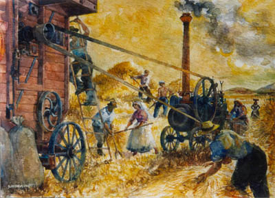 Matteo ed Ernestino, pur con una tremenda volontà di non essere più bambini, non ci capirono quasi niente, essendo impegnati ad ammirare uomini con il fazzoletto annodato al collo, trebbiatori che scatenavano l’ira di dio, trattoristi con aratri lucenti tra nuvole di polvere.