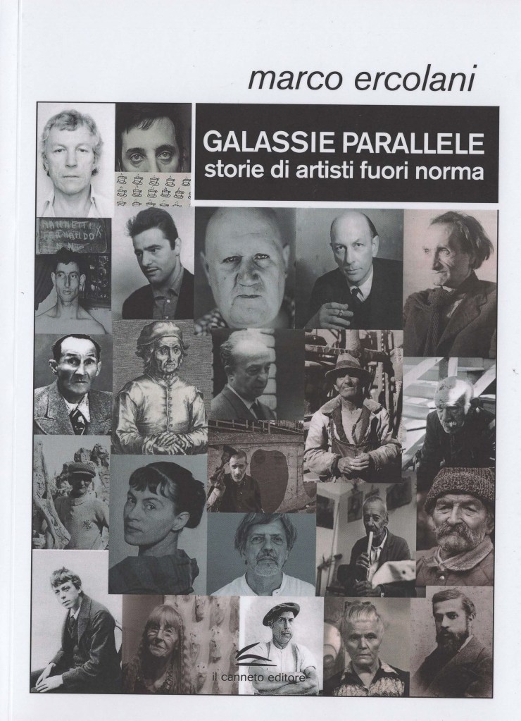 Marco Ercolani in Galassie parallele, storia di artisti fuori norma racconta delle costruzioni, delle torri, di camere le cui pareti diventano atlanti cosmici e compendi di alfabeti impossibili: tutte immagini mentali che alcuni artisti abitano come fossero mondi inauditi.