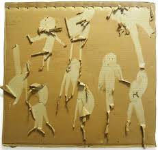 Raggio lavora su cartoni da imballo, supporti di pittura; lavora con l’ocra,
