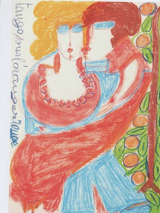 Gli occhi allagati delle figure di Aloïse Corbaz restituiscono la sensazione di annebbiamento che precede il pianto, una difficoltà di messa a fuoco che non sembra turbare i personaggi e l’atmosfera fiabesca che li
