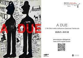 Alla galleria romana “Sic 12 Artstudio” Gustavo Giacosa e Fausto Ferraiuolo, dal 26 settembre 2021, hanno allestito la mostra “A DUE, L’art brut nella collezione Giacosa Ferraiuolo”. L’esposizione è esclusivamente dedicata a opere di Art Brut, termine coniato da Jean Dubuffet nel 1945 e che possiamo tradurre in italiano come “arte grezza” o “arte spontanea”. Con questa definizione, Dubuffet voleva porre l’attenzione su una qualità viscerale del processo artistico, frutto di un impulso creativo autentico e libero da qualsiasi condizionamento estetico, culturale e accademico. Si tratta principalmente di artisti non scolarizzati, spesso eccentrici, le cui opere non si inseriscono consapevolmente nel circuito del mercato artistico. I curatori allestiscono uno spazio in cui il concetto del doppio fa da collante tematico e nell’esperirlo è semplice avvertire la necessità di interrogarsi sul significato che gli artisti in mostra attribuiscono all’atto del guardare. Somiglia a un guardarsi attraverso l’altro per fare la conoscenza di un gemello omozigote, oppure del più estremo antipodo, forse e in fondo, combinazione altra di noi stessi. Ed ecco che lo specchio può diventare il restitutore privilegiato di un doppio che si rovescia e a volte si deforma, oppure strumento di indagine e sonda esplorante di un interno che vuole manifestarsi e lo fa su qualsiasi materiale a disposizione. Guardare ed essere guardati e allo stesso tempo non volerlo fare o non esserne in grado.