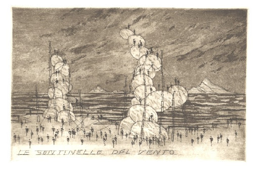 L’arte del paradosso è la via maestra frequentata dalla pittura di Marco Locci (Rapallo, 1951-2015). Al solo enumerare i titoli delle sue opere sembra di entrare in un mondo minuzioso e favoloso, ricco di trucchi maliziosi e di innocenti sorprese da Wunderkammer, quella “camera delle meraviglie” che i collezionisti, dal Medioevo al Rinascimento, arricchivano con oggetti barocchi e stravaganti. Qualche titolo come esempio: I patanchi salgono in cielo, Balenaavela, L’urlo della terra, Il barattolo delle onde, L’una, L’urlo della terra, Onda grande, Polvere di polvere, Questo è un mare di sabbia. Lo spettatore si trova a osservare balene in volo, omini neri, piccoli cieli, falsi sassi, strambi tramonti, piroscafi che volteggiano nell’aria. È chiamato non solo a vedere gli strati delle nuvole, il nero di un’ombra, la luminescenza di un cielo, ma a leggere il quadro attraverso le parole del suo titolo, guidato dalle analogie delicate e surreali pensate dal pittore. Le ipotesi di volo con cui i favolosi Patanchi, strani omini neri che vivono sull’”orizzonte degli eventi”, al di là delle regole del tempo e dello spazio, popolano la scena manovrando balene dalla ampie vele in prossimità di vulcani in eruzione o torri babeliche, sono il black joke con cui il pittore seduce lo spettatore attirandolo nel suo universo parallelo, articolato, da artigiano paziente e visionario, con l’irriverenza infantile e felice di rifare il mondo a partire da un’idea. Echi di Klee, Magritte, Gnoli, non sono estranei alla sua poetica ma restano sullo sfondo. Inscindibile dal senso di questa “commedia” che da oltre trent’anni Locci allestisce nel suo atelier: è un pensiero scherzoso, che mette l’intero mondo tra parentesi, che sacrifica la tragedia delle passioni umane alla futile e folle felicità di un’idea. Allora lo scherzo diventa la seria avventura di un viaggiatore fantastico che è, in realtà, un nomade sedentario. Un uomo che potrebbe entrare nelle stanze vuote di una mostra, aprire lo scrigno con i minuscoli acquerelli suoi piccoli cieli, appenderli alla parete, oppure aprire il suo portapaesaggi portatile. Con la mente sempre a caccia di immagini strane, irriducibile flâneur di parole e di mari, di Patanchi e di cieli, Locci arriva a scherzare con i demoni più seri, a prendersi di gioco di loro, perché “tutto nel mondo è burla”, come canta Falstaff, e “l’uomo è nato burlon”. Ma anche burlador e burlado. Mettersi in gioco con la felicità demiurgica del suo minuscolo universo parallelo è una caratteristica irriverente del carattere di Locci pittore. Un’irriverenza che non vuole scavare dentro realtà intime o tragiche, ma che resta aderente alle maschere visibili dei suoi stessi incantesimi, allo stupor infantile di un gioco che mette in rapporto la mente con gli occhi. Ma prima c’è la mente.