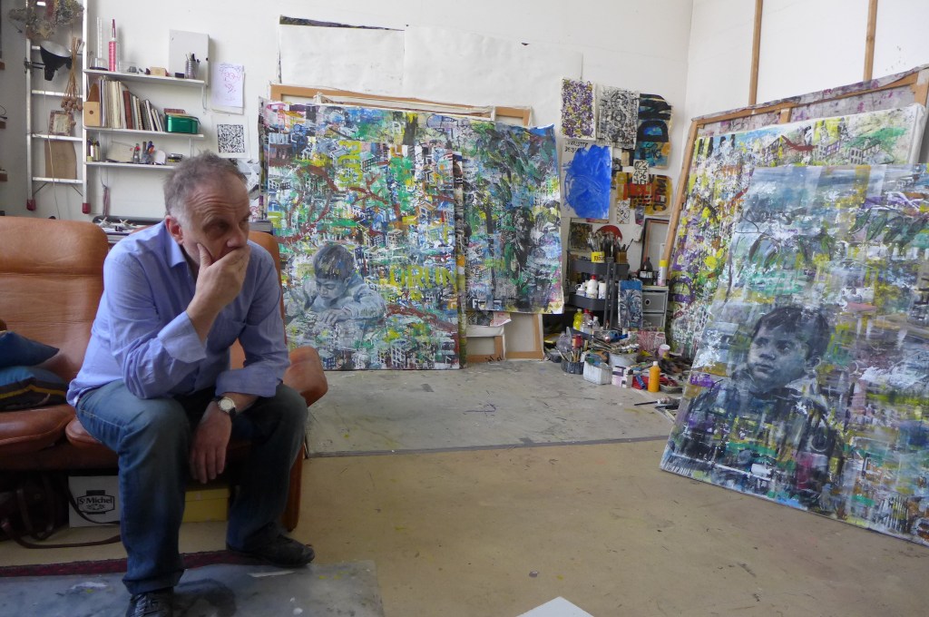 La Galerie Bordas pubblica, in “Prova d’artista”, una originale e commovente plaquette, L’intatta coerenza dello sguardo, scritta da Maria Nadotti, in stretta collaborazione con Rostia Kunovsky e John Berger. È il diario del duplice sguardo di due artisti fotografati da Maria nell’atelier di Rostia, a Châtenay-Malabry, nei sobborghi meridionali di Parigi. Chi legge le parole e le immagini della plaquette è spettatore di un “lavoro in corso” dove si pensa e si respira pittura, nell’atmosfera di un dialogo che impone la necessità di dipingere e di parlare, con la promessa di non smettere mai né di dipingere né di parlare. «Si dipinge perché non si può non dipingere, perché dipingere è un modo di stare al mondo, di guardarlo, interrogarlo, coglierlo di sorpresa e lasciarsene cogliere di sorpresa. Incessantemente, ostinatamente, furiosamente. Senza fretta. Con tutto il tempo del mondo». Il tempo della pittura e del dialogo è palpabile, come se qui fosse in atto la performance di un’opera mai compiuta. Commenta Maria Nadotti: «”Il numero delle vite che entrano nella nostra è incalcolabile”, ha scritto John Berger. Oggi, tracciando con immagini fotografiche e parole questo breve ritratto dell’amicizia tra il pittore Rostia Kunovsky e il narratore John Berger, torno a pensare a quella frase, perché il suo senso mi appare più luminoso che mai: la vita individuale si dà perché in essa entrano, effimeri o per sempre, tanti tu/voi che danno all’io/noi un corpo e un tempo e un corpus di idee, pensieri, sentimenti, emozioni, passioni, ricordi, occasioni mancate, rimpianti. L’io bergeriano è però un continuum che prevede una serie infinita e talora impercettibile di sconfinamenti non solo umani. Siamo fatti delle opere e dei gesti altrui, ma anche della compagnia dei morti e dei non ancora nati, degli alberi, del cielo, delle montagne, degli animali, delle stanze in cui abitiamo, e della luce che tutto rivela. Siamo materia e anima immerse nella materia e nell’anima del mondo, a esse consustanziali. L’attività di sguardo e di ascolto di John Berger è stata forse una costante, instancabile verifica dell’impossibilità di disegnare una soglia tra ciò che siamo e ciò che di continuo diventiamo nella relazione con quanto ci circonda? Non è forse un non-io la soggettività fluida, porosa, non identitaria, di chi è dentro e fuori e lievemente a lato, pienamente qui e sempre altrove?».