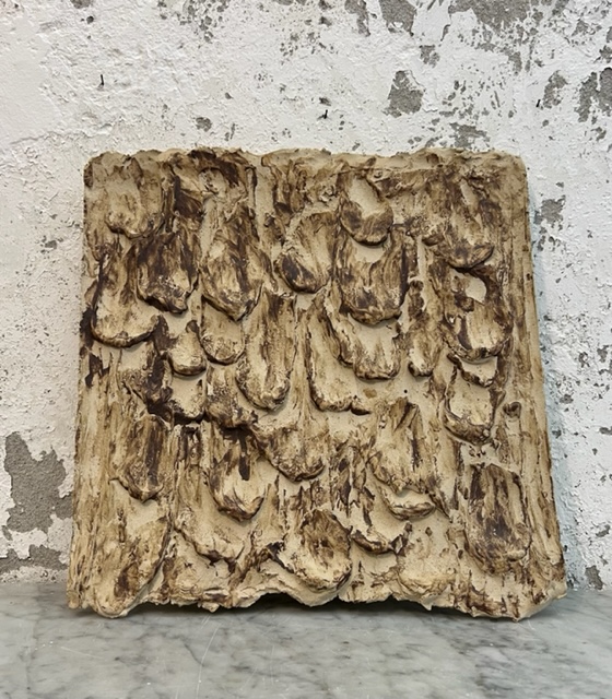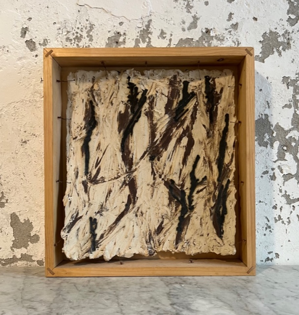 ricerca. Mischiando e manipolando la terra con altro, dai metalli ai tessuti, l’artista trova forma per