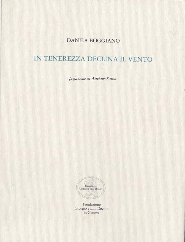 Danila Boggiano pubblica, nel 2021, per le edizioni “Fondazione Giorgio e Lilli Devoto” un libro di poesia, In tenerezza declina il vento, con prefazione di Adriano Sansa. La poesia, come spesso accade, è un mistero che non si rivela facilmente e spesso resiste a una o più letture. Interrogarsi sul senso di un libro poetico può essere vano, anche se occorre farlo per cercare una o più vie che ci conducano al testo.