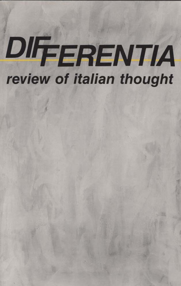 *Il testo apparso in Differentia, 2, primavera 1988 (rivista bilingue diretta da Peter Carravetta), con traduzione di Pasquale Verdicchio, Queens College Press, New York, 1988.