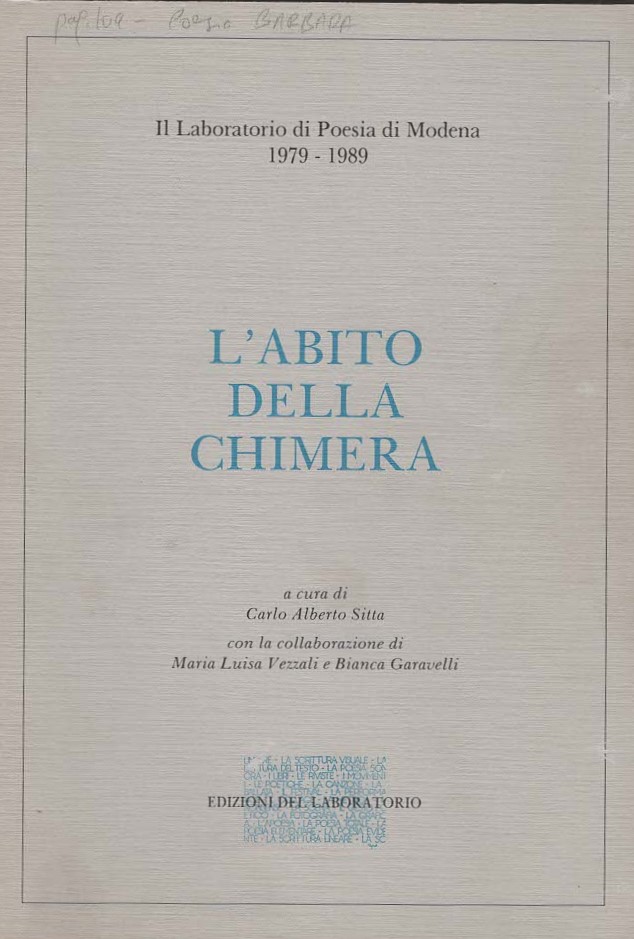 L’intervento di Patrizia Vicinelli è tratto da “L’abito della chimera”, a cura di Carlo Alberto Sitta con la collaborazione di Maria Luisa Vezzali e Bianca Garavelli (Laboratorio di Poesia di Modena 1979-1989.