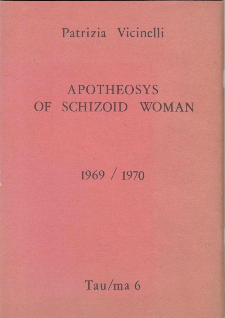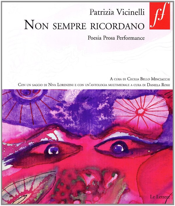 Patrizia Vicinelli (Bologna 1943-1991) nasce a Bologna. Giovanissima, entra a far parte del Gruppo ’63 durante il convegno a La Spezia del 1966. Figura carismatica, aperta alla sperimentazione, il suo mantra ricorrente era “vita uguale opera”. Vicinelli esegue performances di poesia orale e scrive per Alfabeta, Marcatré, Ex, Quindici. Collabora e si confrontava con Emilio Villa, Adriano Spatola, Franco Beltrametti. La sua prima opera scritta, E capita, è pubblicata nel 1962 sulla rivista Bab Ilu, fondata nello stesso anno da Spatola. Patrizia si dedica anche ad altre discipline artistiche e incontra il cinema attraverso Tonino de Bernardi, Claudio Caligari. La sua poetica spazia attraverso influenze ed espressioni poetico-visive con prodotti artistici esposti in tutto il mondo: Milano, New York, Tokyo, San Francisco, Venezia, e i suoi artefatti fonetico-sonori sono disponibili sotto forma di registrazioni. Muore di AIDS nel 1991. Opere: à,a.A, Lerici, 1967; Apotheosys of schizoid woman, Tau, 1979; Non sempre ricordano, Ælia Lælia Edizioni, Parma, 1986 (ristampato con altri testi in Non sempre ricordano. Poesia Prosa Performance, Le Lettere, 2009).