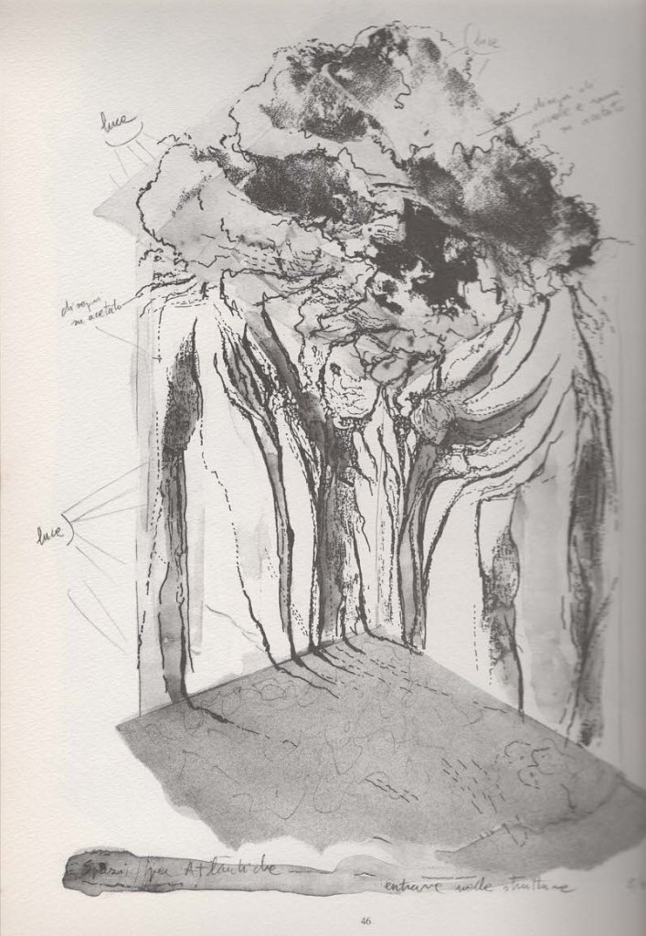 «Non solo il viaggio permette di raggiungere l’esperienza estrema di isolamento, ma anche la stanzialità: sono modalità opposte che possono ugualmente provocare l’apertura in una direzione creativa. Henri Michaux aveva scritto: “Si può trovare la propria verità anche guardando per quarantotto ore una qualsiasi carta da parati”. Qualche anno fa avevo volutamente fatto un’esperienza di stanzialità: lavorare per molti mesi nel mio studio per costruire uno dei miei “quaderni” dove segni e parole si intrecciavano. Il titolo era: “E nella stanza un varco”. Quindi, o mi costringevo ad entrare nel mio labirinto interiore, o cercavo di uscirne, come sfondando una parete, per aprirmi ad un mondo luminoso o oscuro, ma pieno di immagini e parole…».