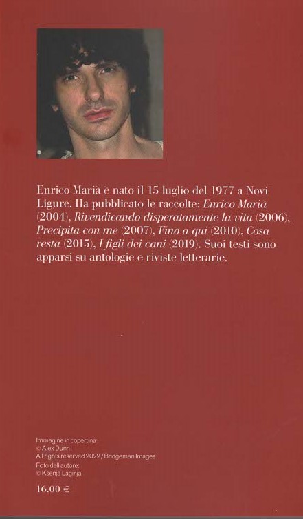 Certi libri non nascono come libri. La direzione del sole (La nave di Teseo, 2022) è uno di questi. Le poesie sono “colpi di sonda” nel senso artaudiano del termine. I versi di Marià campeggiano nudi nel foglio, meteore da cui non sai cosa aspettarti: irruzioni del corpo oltraggiato, soprassalti dell’anima offesa, e simultaneamente rigorosi teoremi, geometrie di parole. Marià fa sparire la sintassi: la nasconde, la polverizza, nella scena evocata dalle parole (“Monade del gorgo / è l’atrio dei cani / l’ultima solitudine / della pioggia rettilinea”; “Da Auschwitz a Lourdes / i vermi delle dita / Genova luce / l’autismo di Dio”; “Le scale a ventaglio / del centro psichiatrico / che a perderci urlano / i seni dei cigni”). Ma di quale scena parliamo? Di una fotografia senza filtri che scortica l’oggetto per eccesso di luce e per eccesso d’ombra. L’analogia con la fotografia ci permette di inquadrare meglio queste poesie-rasoio che tagliano l’occhio del lettore con l’antico gesto surrealista di Le chien andalou. Ma qui le visioni non sono la fiamma sovversiva di Buñuel ma un tessuto mentale scavato dentro un realismo tragico. Qui l’abuso feroce, la violenza sessuale, il carcere, il disagio, la psicosi, la droga, sono l’ombra di una parola che brucia la sua notturna, putrida materia in un fuoco ultimo, sull’orlo dell’abisso, assetato di redenzione. La parola secca di Marià, il lessico senza veli, la furia contratta del narrare, inventano una poesia che, pur apparendo minimale, è al contrario l’acme del grido, “ciò che resta del fuoco”, la cenere che accusa, senza perdono ma con immensa pietà, e continua a bisbigliare di fantasmi amati anche nel loro orrore, come pezzi di sé. “La direzione del sole” nasce da questa tenebra assoluta che Enrico ha trasformato in notti plurali, illuminate. Come scrivono I fratelli D’Innocenzo nella fulminante prefazione: “…la sua poesia è un inferno strabico che a differenza di molti suoi colleghi evita il piagnisteo turistico, la parola che media. Uno così non viene perdonato”.