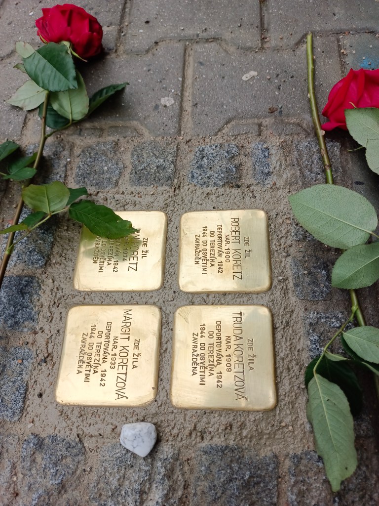 8 settembre 2022, ore 9:00. Sono a Plzeň, Ulice Skrétova 16, per la posa delle Stolpertseine per Margit e la sua famiglia. Risalgono al mese di settembre 2021 i primi contatti con Anne Thomas, coordinatrice internazionale per l’installazione delle Stolperteine, e Kvĕtuše Sokolovà, coordinatrice per Pilsen, per sapere se a Pilsen c’è una Stolpertstein per Margit. Non c’è. Racconto allora di Margit e delle mie ricerche. Kvĕtuše mi risponde pochi giorni dopo allegando alla sua mail due fotografie del Registro delle nascite e morti di Pilsen. Uno è il certificato della famiglia di origine di Robert, l’altro della famiglia di Robert con i nomi di Trude Margit e Hanuš.