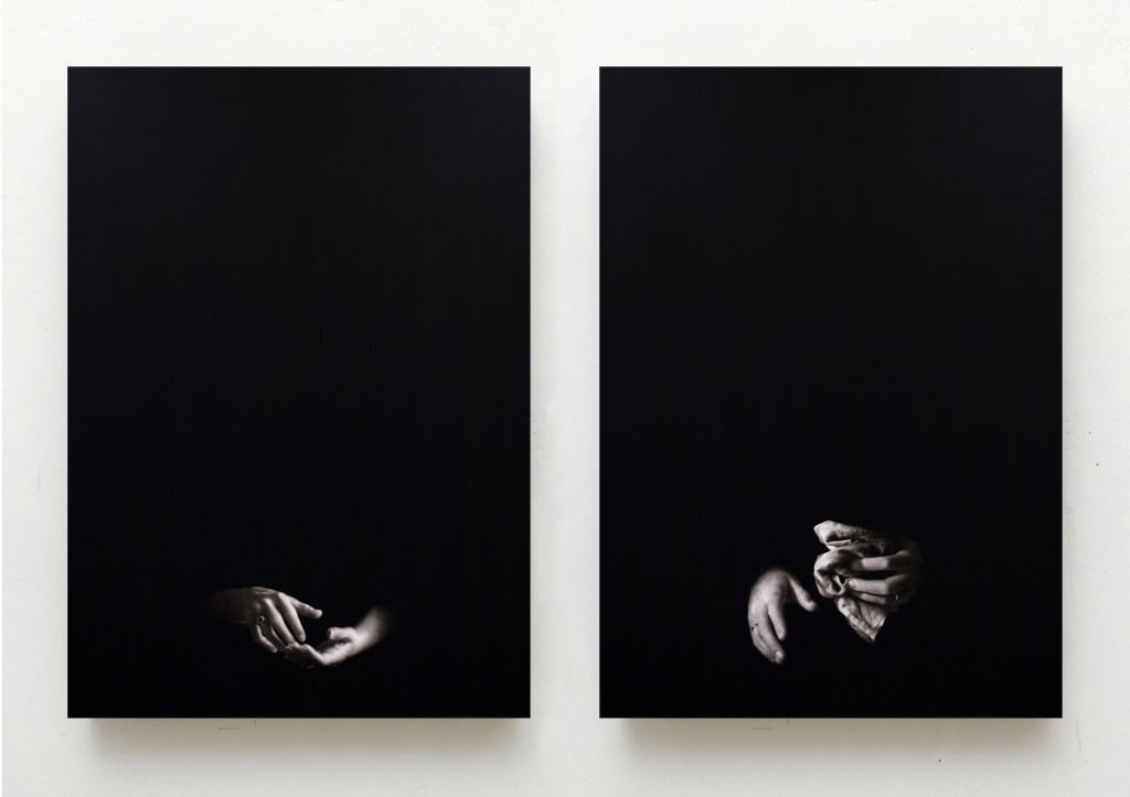 Nella notte, terra nera (dittico, 2020), olio su tavola laccata