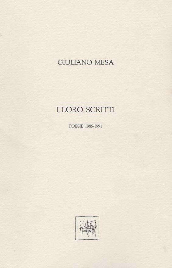 *I testi sono tratti da: Giuliano Mesa, I loro scritti. Poesie 1985-1991, Quasar Editrice, Roma 1992.