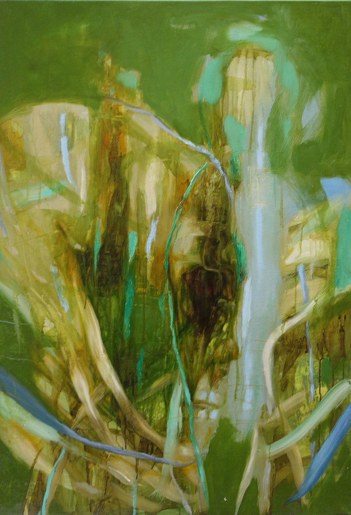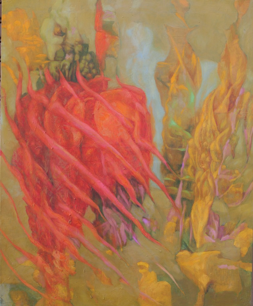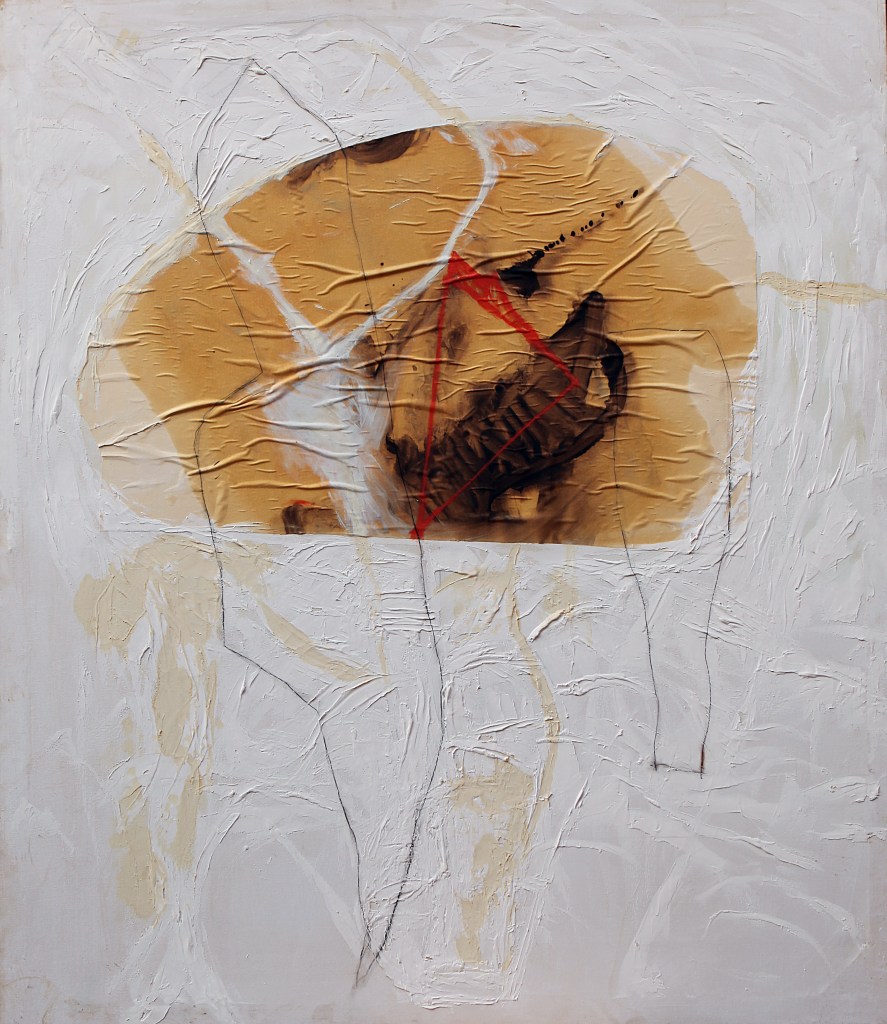 C’è un’arte che non domina uomini o paesaggi ma li reinventa, con un gesto fulmineo, come presenze aliene Raccoglimento e meditazione, prima dell’esecuzione, come per il pittore zen: al momento dell’esecuzione, esserci: poi, dopo l’esecuzione, sparire. La figura dell’artista, come meteora o lampo, brilla per il tempo esatto che serve all’opera per nascere: dopo, si ritira nel buio. Castiglia infrange la fissità dell’apparato scenico, la piccola poetica della «finestra sul cortile», tipica del pittore, espressionista o surrealista che sia, sempre scenografo delle sue opere. Castiglia non ha paura di essere fluido; lascia che la sua opera, come un campo magnetico e uno spazio amoroso, parli più a se stessa che all’autore, senza gli inutili ormeggi di parate cromatiche e di acrobazie formali, ma sempre scintillante del suo rosso vulcanico, del suo blu da visione, del suo nero “bitume di Giudea”. Nel chiostro dell’abbazia di Marienberg sono scolpite due figure: una sembra annunciare e l’altra ascoltare, mentre uno spettrale uccello azzurro si mette in mezzo e accenna una danza titubante sullo sfondo verde e stinto della volta. In un affresco della cripta è miracolosamente sopravvissuta una macchia blu dove si protendono angeli dalle ali ormai scomparse. Nell’affresco carolingio della cappella di S. Maria di Munster S. Giovanni Battista entra dentro una camera azzurra. Balza dalla finestra aperta, il corpo slanciato nel salto, le mani giunte in segno di supplica, la testa già decapitata e rovesciata nel bacile del soldato che, davanti a lui nella stessa stanza, un sorriso ambiguo sulla bocca, guarda quella testa recisa come se vi si specchiasse. La testa è rivolta assurdamente verso di lui. Forse è da sguardi surreali, arcaici e perentori simili a questo, che si formò, nel tempo, l’occhio del pittore.