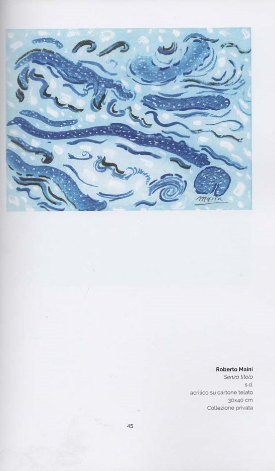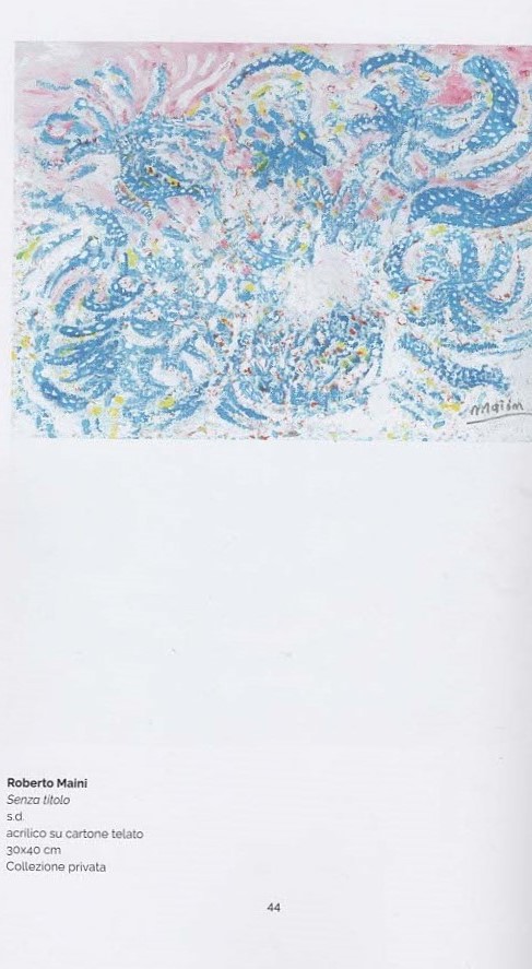 Oggi, al Festival genovese dell’Arte Irregolare, nell’ambito della mostra “Per alto mare aperto. Viaggi, nuovi orizzonti, visioni”, Maini conferma la classicità del suo astrattismo pittorico, parallela e antitetica alla sua vita squilibrata e distonica. D’altra parte, è proprio al confine tra insiemi eterogenei che la distinzione fra diversi e sani riesce a farci percepire ciò che è al di qua e al di là dello steccato, mostrandoci le produzioni degli artisti e degli psicotici nelle due differenti prospettive. Certe incursioni nell’altro da sé, come quelle caldeggiate da Nietzsche, che vede nella follia uno stato da ‘volere’ per penetrare nei “Regni dell’Irreale”, coincide con l’esperienza di John Perceval, il quale afferma che non avrebbe potuto ritrovare la salute con una condotta sana. La follia o lo stato di salute mentale non sono questione di volontà. Se “Il matto non gioca mai”, “l’artista gioca sempre”, se Il matto sprofonda irreversibilmente nelle proprie immagini psichiche, se la sua è una follia senza ritorno, ciò che resta è comunque l’opera che mette alla luce: in questo caso gli acrilici su carta di Roberto Maini, visioni variopinte e apocalittiche, nel segno dell’amato William Blake, che il pittore restituisce con evidente grazia formale. Ma la vita lo rapisce nel caos di una esistenza irregolare dove non c’è più spazio per ritrovare un’altra e più rigenerante vita. Il dolore psichico è brutale: brucia metafore ed analogie. Ma, a dispetto di questo, “prove” della sua arte restano sempre perché, come scrive lo stesso pittore, “nell’arte voglio parlare dell’amore e della vita”.