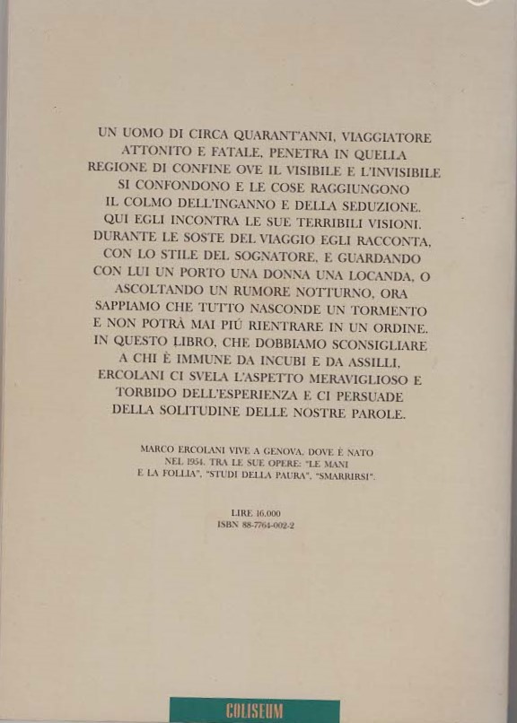 *Il testo è l’incipit di: Col favore delle tenebre, Coliseum, Milano, 1987.