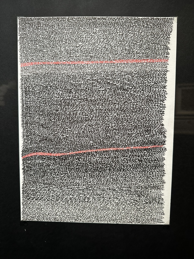 Mancano però ancora all’appello, nel percorso che si è tracciato, molti artisti. Tra questi ci limitiamo a recuperare l’intensa ricerca espressiva di Laura Cingolani, che nella sua attività spazia dalla scrittura al disegno, alla perfomance. In mostra si trova un’opera del 2023, Act of Writing, un lavoro che fa ricorso a una tecnica mista su cartone raschiato e in cui forme di un codice indecifrabile sembrano muoversi con la leggerezza di fantasmi. Un’opera che ci pare riassumere molti aspetti che qui si sono ricordati e che sembra, già dal titolo, volersi interrogare sul senso, i limiti, le implicazioni del gesto di scrivere. Fissandola, non riconosciamo le lettere di un alfabeto già noto. Ma comprendiamo di essere davvero arrivati a un punto nevralgico, al momento in cui prende forma ciò che ogni frase dentro di sé nasconde, l’enigma che ogni atto creativo consegna a chi sappia prestarvi ascolto: una partitura inedita, segreta.