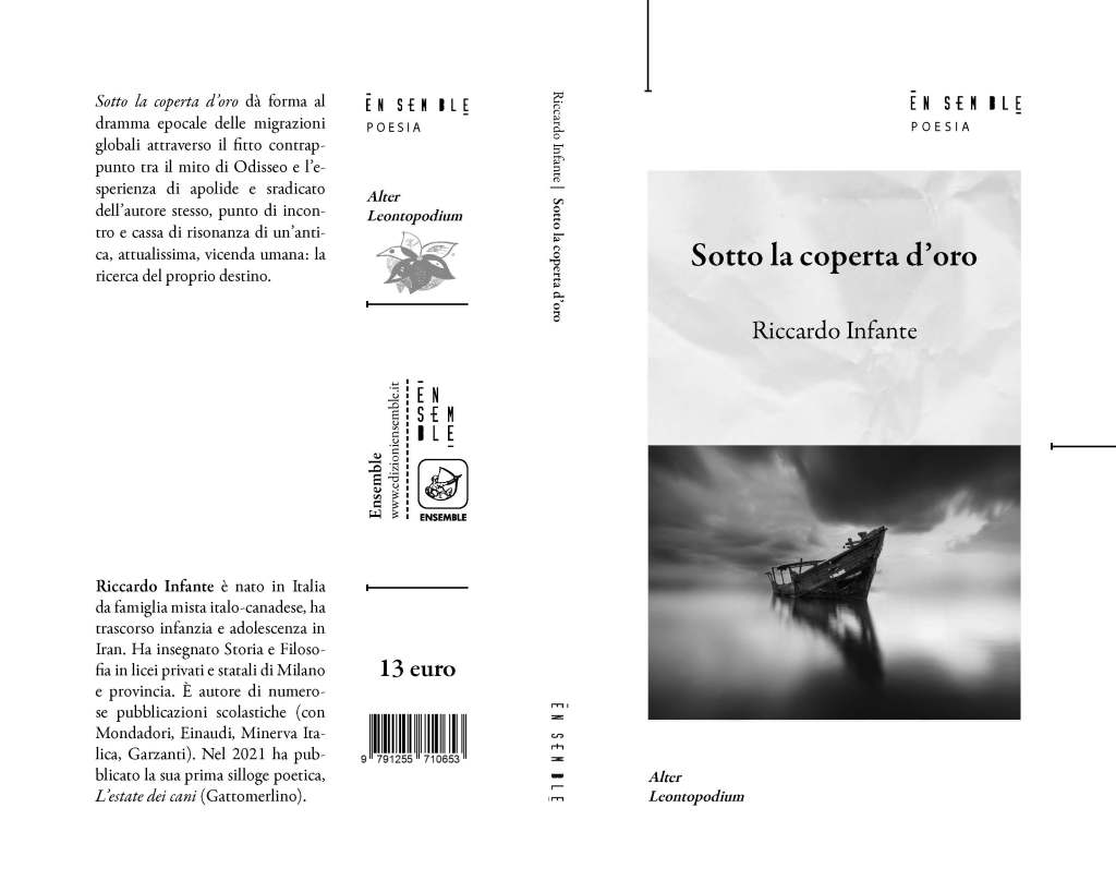 Esce per l’editore ‘Ensemble’ di Roma Sotto la coperta d’oro, un lungo monologo in versi di limpida musicalità in cui Riccardo Infante, poeta e storico, ci invita a riflettere sul fenomeno delle migrazioni globali attraverso un fitto contrappunto tra il mito di Odisseo e l’esperienza di apolide e sradicato dell’autore stesso. Infante ci stimola a riflettere sui fondamenti dell’impegno umanitario, raccontando la civiltà occidentale come sintesi del mondo greco, mediorientale e nordafricano, con le sue luci, i suoi colori e i suoi profumi. La coperta d’oro del titolo, è al contempo, molto concretamente, la coperta termica in cui si avvolge il profugo, il migrante, il naufrago, ma rimanda anche al sogno di una vita migliore, al riparo dalle tragedie della guerra, della fame e dello sfruttamento. Allude, anche, ad una dimensione fiabesca, così come ogni fiaba dovrebbe essere un viaggio a lieto fine. L’eroe omerico, protagonista dell’Odissea, è figura diacronica che attraversa la storia della letteratura occidentale e rivive, oggi, nelle vesti del profugo, del naufrago, dello scampato dalle guerre d’Asia e d’Africa che attraverso un viaggio, periglioso e dolente, cerca di raggiungere un luogo di salvezza, un futuro migliore, una Itaca verde per sé e per i propri figli. Là dove oggi si afferma sempre più una cultura del respingimento e della chiusura, l’autore propone un’idea di rinascita. La stessa Europa, staccata dalle sue radici mediterranee, rischia di inaridire, isterilirsi in un glaciale inverno demografico che è anche impoverimento politico, ideologico e declino economico.