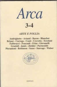 E ora veniamo a “I libri dell’Arca”. Nel caso di questa serie di volumi, i redattori si sono ridotti a due, Marco Ercolani e Lucetta Frisa, ma il rapporto con gli altri collaboratori della rivista è rimasto intatto: ad essi, infatti, si devono molte opere o traduzioni che sono apparse nella collana. “I libri dell’Arca” sono suddivisi in tre sezioni: L’arte della follia, Isola delle voci, Segni e visioni. Lo spirito resta quello che aveva nutrito la rivista. In primo piano c’è l’attenzione verso la zona oscura della mente: basti pensare a lavori di Marco Ercolani come Il tempo di Perseo e Discorso contro la morte, o a un libro di Dieter Schlesak su Hölderlin (che mette in luce dettagli poco noti sulla vita del poeta), a volumi poetici e saggistici di Bernard Noël come L’ombra del doppio o Artaud e Paule, tradotti e curati da Lucetta Frisa (la quale ha riscoperto anche poeti francesi quasi del tutto inediti in Italia, come Maurice Scève, Alain Borne e Claude Esteban).