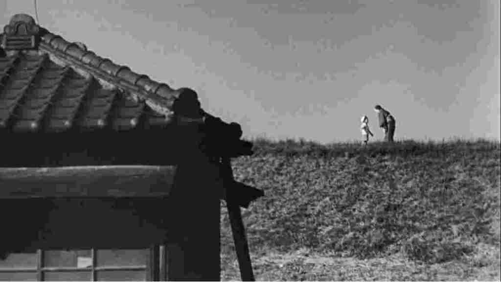 La cinepresa puntata su un traliccio, sui panni stesi al sole, mentre un treno attraversa la campagna. Il motore di una chiatta fa da sottofondo al dialogo di due uomini che parlano dei loro figli, appoggiati al parapetto del ponte in una placida giornata di sole. Le riprese degli interni eseguite sempre all’altezza del pavimento, in modo che lo spazio si restringa riempiendo i vuoti. Una serie continua di quadri, che si incastrano uno dentro l’altro, scivolando in quello che Enrico Ghezzi ha definito “un abisso quieto”. Ad un certo punto la voce del critico si interrompe; essa riprende dopo qualche istante di silenzio. “C’è stata una telefonata, ma non importa. Fa parte del tessuto quotidiano del cinema di Yasujiro Ozu.”
