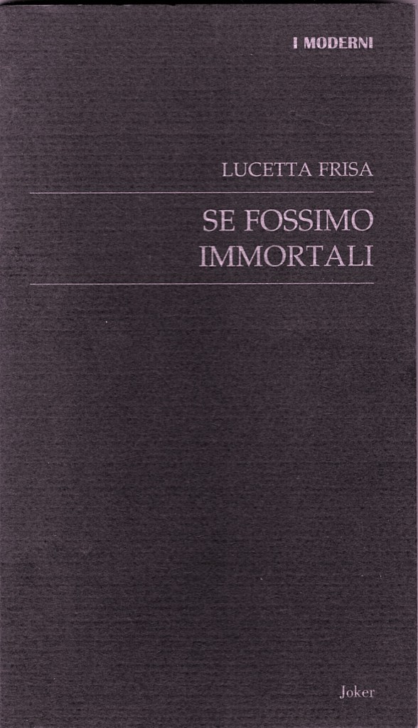 Merita più di una lettura, questa aspra raccolta di Lucetta Frisa (Se fossimo immortali, Joker, 2006); in essa sembrano infatti giungere a compimento le principali tematiche già ampiamente sviluppate nelle opere precedenti Notte alta (Book,1997) e L’altra (Manni,2001). Innanzitutto colpisce la complessa architettura che sostiene l’intero libro e che ora risulta funzionale a un percorso di individuazione svolto attraverso il flusso coscienziale di coppie di opposti, a iniziare da quella “interno/ esterno”, mirabilmente espressa con l’immagine del vaso (“Vaso etrusco”) nella poesia d’apertura e ripresa in limine alla sezione di chiusura Autoritratti diurni e notturni, significativamente trasposta nel suo attiguo femminile (“Sono seduta di fianco su un’urna etrusca”).