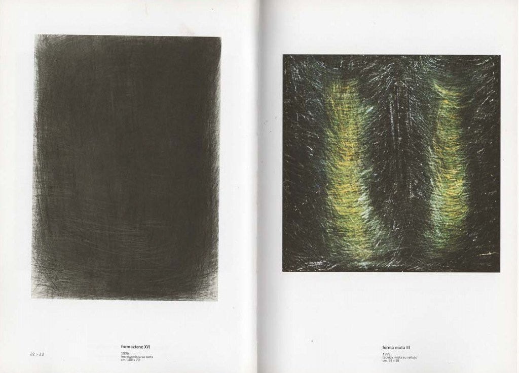 Le carte e i fogli delineati di Paola Ricci sono come mappe stratificate di una immersione nel tempo. Una strana pittura che ritorna al segno “nero su nero” e richiama una conformazione fossile per un passaggio molto chiaro verso un’emersione luminosa. Quindi una forte evocazione che rimanda a un prima e a un dopo la pittura. Dirò elencandole alcune precise sensazioni. UNA- l’ascolto di una lontana pittura di cui non si può che rimpiangere l’assenza. DUE – la verifica di una consumazione della materia pittorica, ridotta a polvere o a segni filiformi di carbone che portano con sé il segno di un destino troppo umano. TRE – il rarefarsi inatteso da questo intrico come per uscire da un groviglio di rami. Una condensazione fortemente intrecciata tra realtà e sogno si apre comunque verso un orizzonte, una radura tra le foglie. Queste sensazioni assolute s’impongono come segni sovrapposti-intrecciati sopra uno sfondo opaco. Come camminando sulla riva di una torbiera, la stratificazione fossile di umile materia vivente che si nasconde in se stessa si sente come una fermentazione sotto i piedi. Il suo passaggio al nero-fossile è recente e l’acqua è nera perché filtrata dalle particelle in sospensione di carbone. Il colore partecipa della vita del nero quando si spegne ma sa riemergere dal nero della combustione. Moltissimi neri diversi e in fine simili portano verso i segni di una fioritura che nasce dal verde, a partire dalle matasse stratificate di humus per produrre la carne odorosa dei funghi e la fioritura improvvisa dai bulbi dei ciclamini e dei narcisi. Un arte del tutto naturale -si può dire- appena percepibile, come il “rumore” della crescita dell’erba e l’espandersi delle radici e dei rami degli alberi dentro l’aria e alla terra. Ma anche un’arte del tutto non naturale che parla silenziosamente quando la terra ha perso la memoria della terra. Questo è il groviglio di impressioni sulle Formazioni, come sono chiamate distintamente le operazioni su carta di Paola Ricci. Ecco ciò che di spontaneo dovrà però essere riportato a una serie complessa di meditazioni che fanno centro sulla contemplazione da parte dell’artista dei dipinti di Tintoretto: nei grandi cicli veneziani della Scuola di San. Rocco, della Madonna dell’Orto, e dell’Ultima Cena, drammaticamente ultima e tribolata, nella chiesa di San Trovaso. E’ nota una limitata produzione sulla carta dei disegni da parte di Tintoretto, perché egli preferiva “disegnare col pennello” in una struttura stratificata. I cambiamenti d’immagine si ottengono per sovrapposizione disegnando e ridisegnando col pennello. E nonostante quanto si è creduto la chiave per comprendere la tecnica del Tintoretto è il disegno, un particolare disegno che Paola Ricci insegue con devota ostinazione. Tintoretto ama dipingere non solo sulla preparazione (a carboncino su gesso bianco delle preparazioni e a biacca su quelle scure), ma continua a lavorare con il pennello nei vari stadi della pittura ora con la biacca ma frequentemente con pigmento nerastro e anche con lacche rossoviola, o addirittura con “resti di tavolozza”. Queste presenze non prima rivelabili con la strumentazione di indagine dei dipinti hanno messo in evidenza la cucina della pittura di Tintoretto e la sua assoluta bontà in occasione del quarto centenario della sua morte e soprattutto la funzione del “disegno veneziano” che non è vero non esista ma che viene, come dire, intessuto nella pittura. Addirittura in Bellini vediamo come la figura non sia aiutata dal disegno, un vero e proprio disegno preparatorio ma da un disegno intessuto e collaborante con la stessa pittura, mentre invece il paesaggio, i paesaggi di Giovanni Bellini, in barba ad ogni reticolo prospettico, sono eseguiti di getto, senza apparente mediazione disegnativi. Stupefacente…
