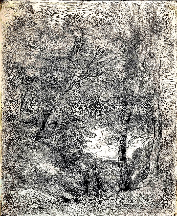 Esposizione di disegni e stampe di Corot alla Nationale. Ne ho guardati soltanto una cinquantina, ma attentamente, col desiderio di portarmene il più possibile nella memoria. I primi sembranno i più belli. Non hanno quella magnifica libertà dei disegni del 1840, ma non hanno più quell’aria di virtuosismo che dà un po’ di fastidio al mio piacere. Sono talvolta duri e secchi, eseguiti con una cura che ricorda i paesaggi di Dürer. Ho l’impressione che Corot, a quell’epoca, dovette usare la materia più ingrata, quella di cui si servono gli architetti per le piante, una matita grigia più che nera, e che fora la carta. Tuttavia, basta un segno di quella matita, nella mano di Corot, per far vedere una collina, la luce nella collina e quasi il colore del cielo. Non so se egli abbia trovato questo procedimento in certo modo magico. Un disegno di lui, eseguito verso il 1850, e alla maniera della sua giovinezza, m’è sembrato sostenuto e freddo. Sarebbe interessante poter notare tanto quello che lui non indica nei suoi paesaggi quanto quello che indica, poiché la sua scelta è ridotta all’irriducibile, ed è proprio in questo che lui mi pare grande. Osservando quei meravigliosi disegni così distesi e profondi che uno è quasi portato ad allungare il braccio nella carta, per vedere se ciò non sia vero, mi sono chiesto quanto avrebbe potuto aggiungere il colore a tali opere. Niente, senza dubbio. Il colore, in tal caso, non sarebbe che una piccolezza, ciò che Corot avrebbe chiamato leggiadria.