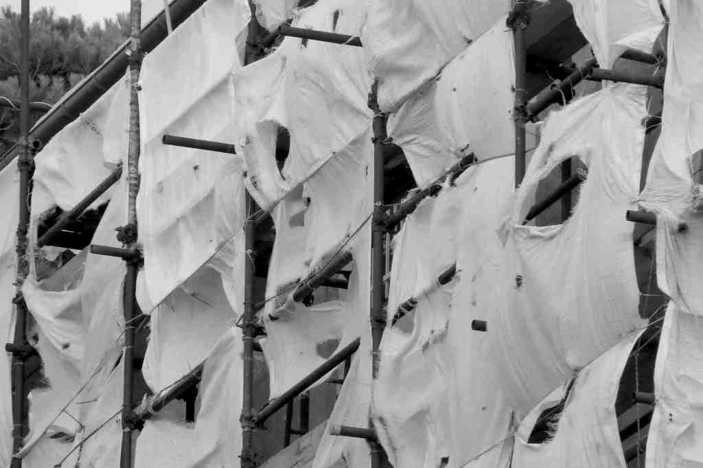 La città di C. con le centinaia di ponteggi è ancora più stratificata. La sensazione della gabbia, del labirinto fortificato si accentua. Sotto le reti sono sparite centinaia di metri quadri di facciate. Dietro s’intravedono figure, corpi o corpi affrescati, finte architetture velate dai tramagli1 edilizi. Altri corridoi, dunque, altro cordame, nodi, ancora più ombra, una foresta di pali dentro la foresta di pietra.