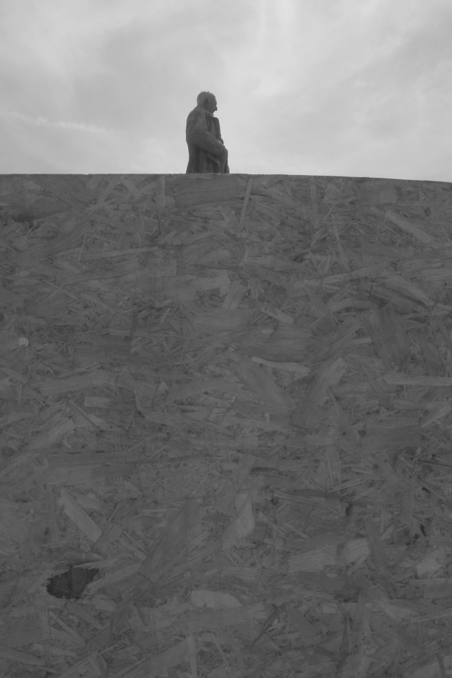 La ruota panoramica. La sfera biologica. L’alluce della statua. Il sandalo. Il piede di un camminatore. Un giorno un cane alzò la gamba sopra il sandalo… Le mura idrodinamiche. Una fila di palme oggi oscilla, i tronchi sottili sono scossi. Il vento forte stacca i cappelli e abbatte, i gabbiani sono superbi, eccitati. Il Mercurio giallo è screpolato, dalla cornucopia escono fogli di intonaco, l’aria ha il sapore del kebab e del fritto. Scende una squadra da via San *** sotto striscioni che schioccano.