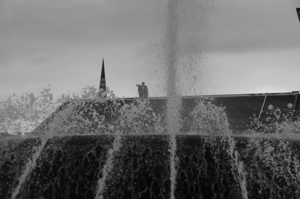 I miei turisti non mi sentono. Non mi sentono perché sono tutti seduti a pochi metri da getti d’acqua, quei sifoni chiassosi disposti a decine intorno alla vasca di Piazza C.