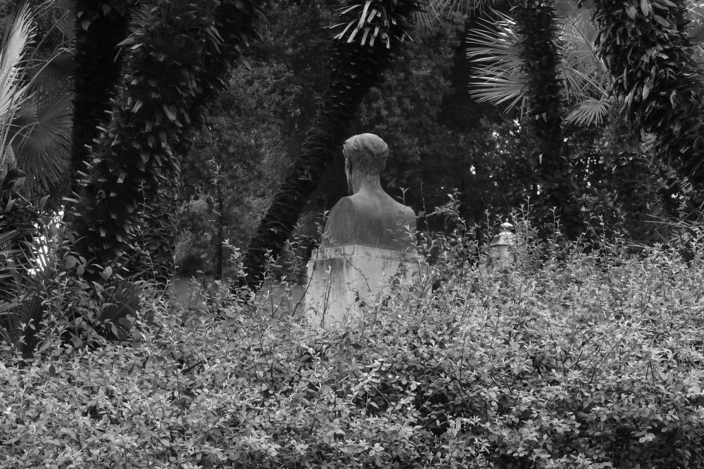 I Giardini *** sono terrazzamenti, forse rovine di un parco, forse qualcosa che non è mai stato e non è niente: cespugli di alloro malati, una ripida scalinata e una costruzione rossa che incombe. La scalinata è lunghissima, attraversa diversi livelli, passa accanto ai Giardini ***. La prospettiva verso il basso è una spaccatura ondulata. I terrazzamenti hanno pochissima erba e molta terra, oggi polvere.