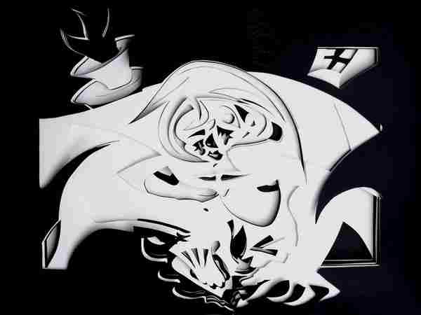 Il “segnetto nel mondo” è la violenza dettagliata, minuziosa, esatta, con cui vuole sottrarre all’informe qualsiasi nebulosità e restituirlo a una nitidezza gelida, con le figure che si muovono misteriose dallo sfondo e, nel taglio da cui si profilano, avanzano verso lo spettatore – spettri non dell’accumulo ma della spoliazione, della fessura, delle ferite. Grondona, attento alle tattiche distruttive e riparative dell’arte, continua a vivere la frammentazione dell’oggetto amato-odiato – il corpo della madre letteralmente tagliuzzato, dissanguato, separato dalla vita – come un pullulare di pieni e di vuoti in cui quella tragedia continua a ritornare, con la disperazione dell’evidenza e l’illusione della riparazione. C’è, ancora e sempre, per Grondona, un corpo da sfregiare e rimodellare, come se la madre fosse da uccidere ancora.